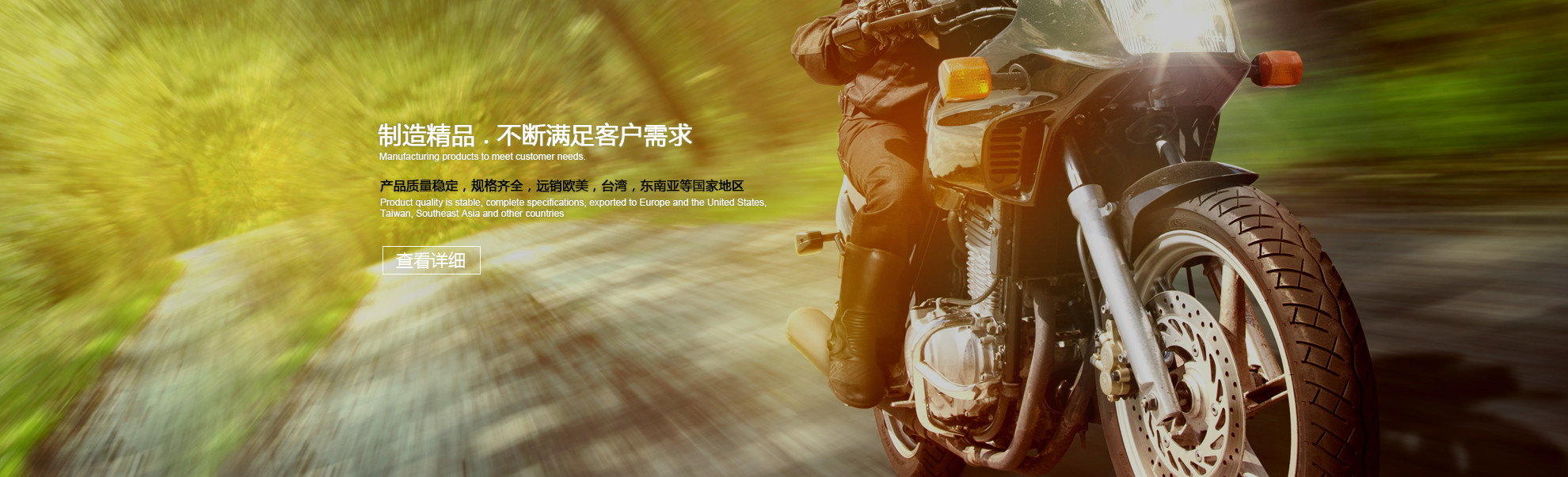 公司主營(yíng)的GY6,AN125,UZ125,115T,100T,290,90,50等軸套(滑套,定距筒)及HM50起動(dòng)座系列產(chǎn)品,被國(guó)內(nèi)大型合資摩托車廠評(píng)為指定供應(yīng)商,同時(shí)與國(guó)內(nèi)幾家知名品牌摩托車廠家,發(fā)動(dòng)機(jī)主機(jī)廠家建立了長(zhǎng)期穩(wěn)定的合作關(guān)系。公司產(chǎn)品遠(yuǎn)銷臺(tái)灣,東南亞等國(guó)家地區(qū)